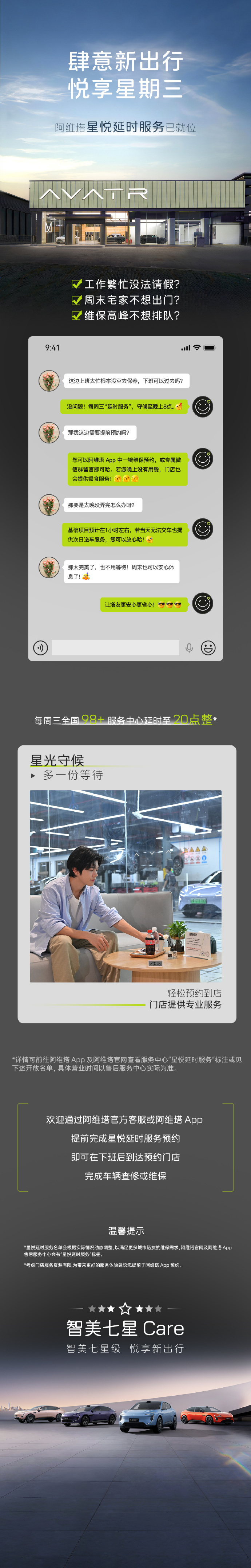 阿维塔官宣推出星悦延时服务,每周三全国 98+ 服务中心延时至晚上 8 点